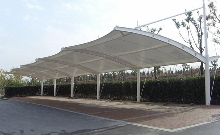張拉膜車棚資料選用了進(jìn)口結(jié)構(gòu)修建資料。車棚骨架,外表處理選用進(jìn)口船用底漆,炳烯酸聚氨酯面漆。