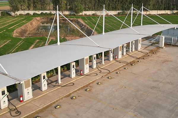 天津充電樁膜結(jié)構(gòu)具有諸多傳統(tǒng)車棚不可比擬的優(yōu)點(diǎn),造型多樣、且美觀時(shí)尚; 棚膜材料是一種度的織物基材和聚合物涂層構(gòu)成的復(fù)合材料,防火等級(jí)為Bl級(jí),屬難燃材料; 膜材耐久性好、自潔性好,而且不受紫外光的影響,其使用壽命在15年以上。 目前張拉膜充電樁車棚/雨棚已在很多城市廣泛應(yīng)用。